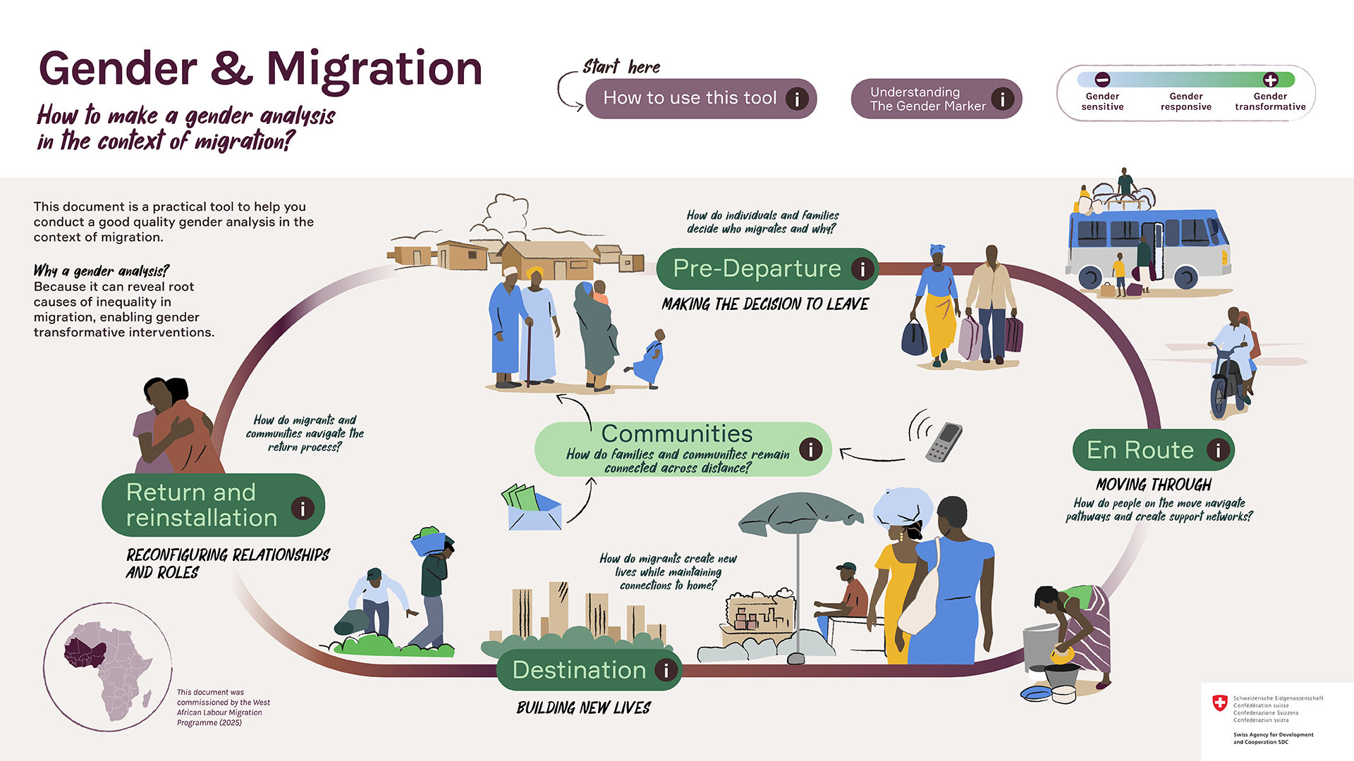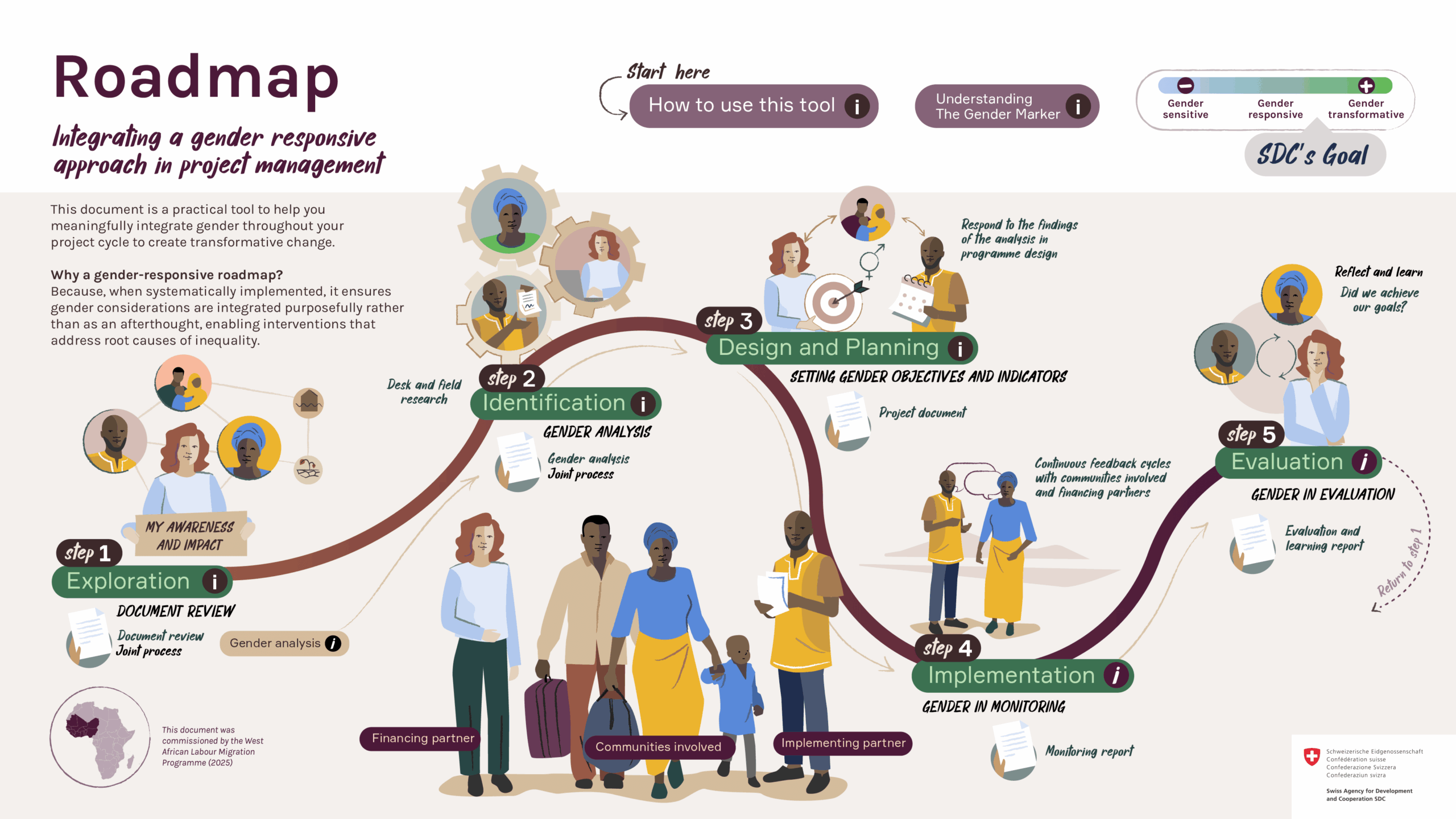 Within international development programmes, migration and gender dynamics are deeply interconnected. For the Swiss Agency for Development and Cooperation (SDC), teams working in West Africa needed practical tools to analyse these dynamics and translate them into gender-responsive project decisions. The challenge was to make complex social, cultural and policy frameworks usable for programme managers and field teams operating in diverse local contexts.